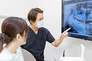 歯科用CTで精密な検査を行います。顎の骨の状態や神経、残っている歯の位置などを立体的に正確に把握できるようにすることがより良い治療結果に導きます。